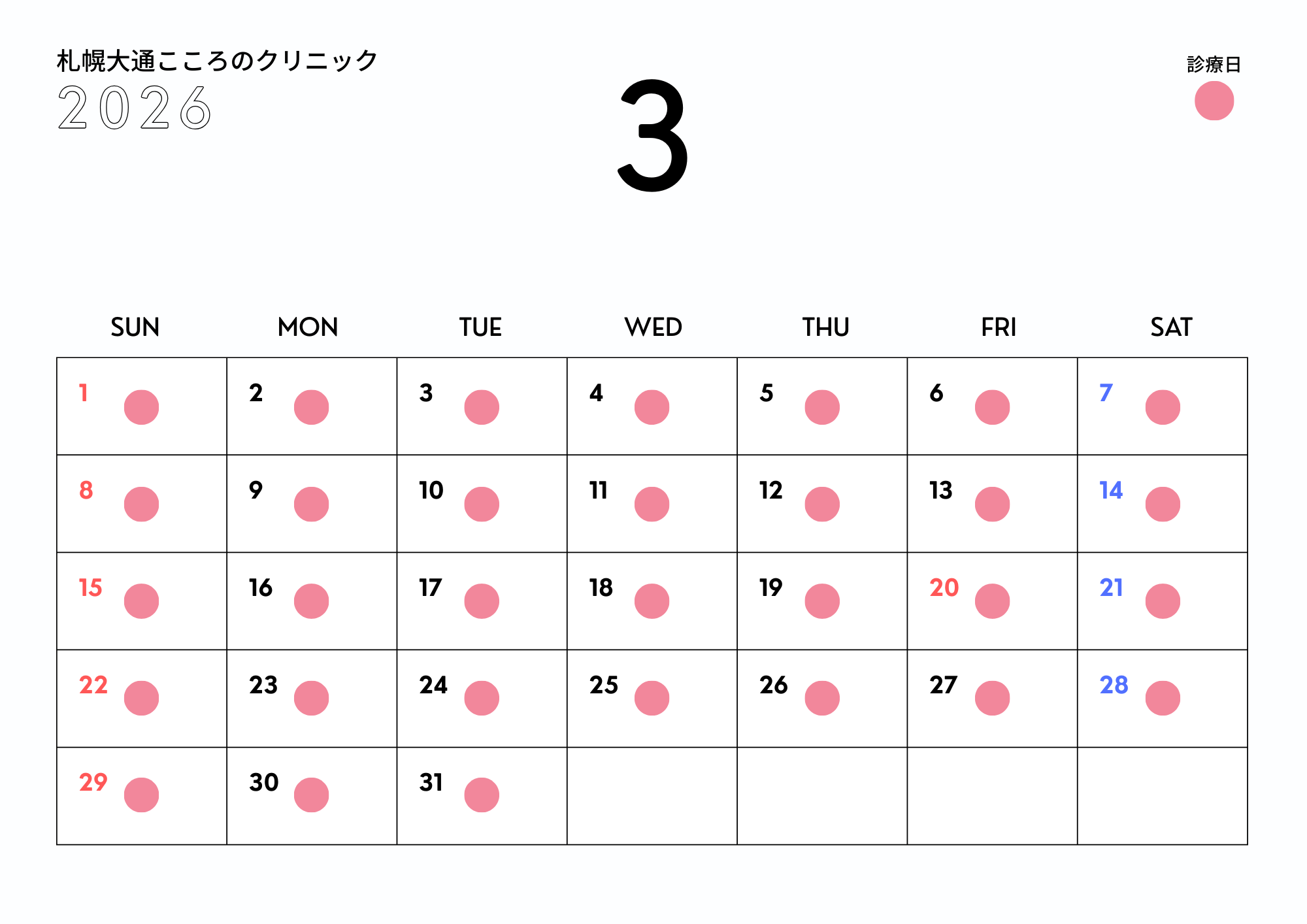 ←2026年2月の診療日はこちら 札幌大通こころのクリニック2026年3月診療日のお知らせ